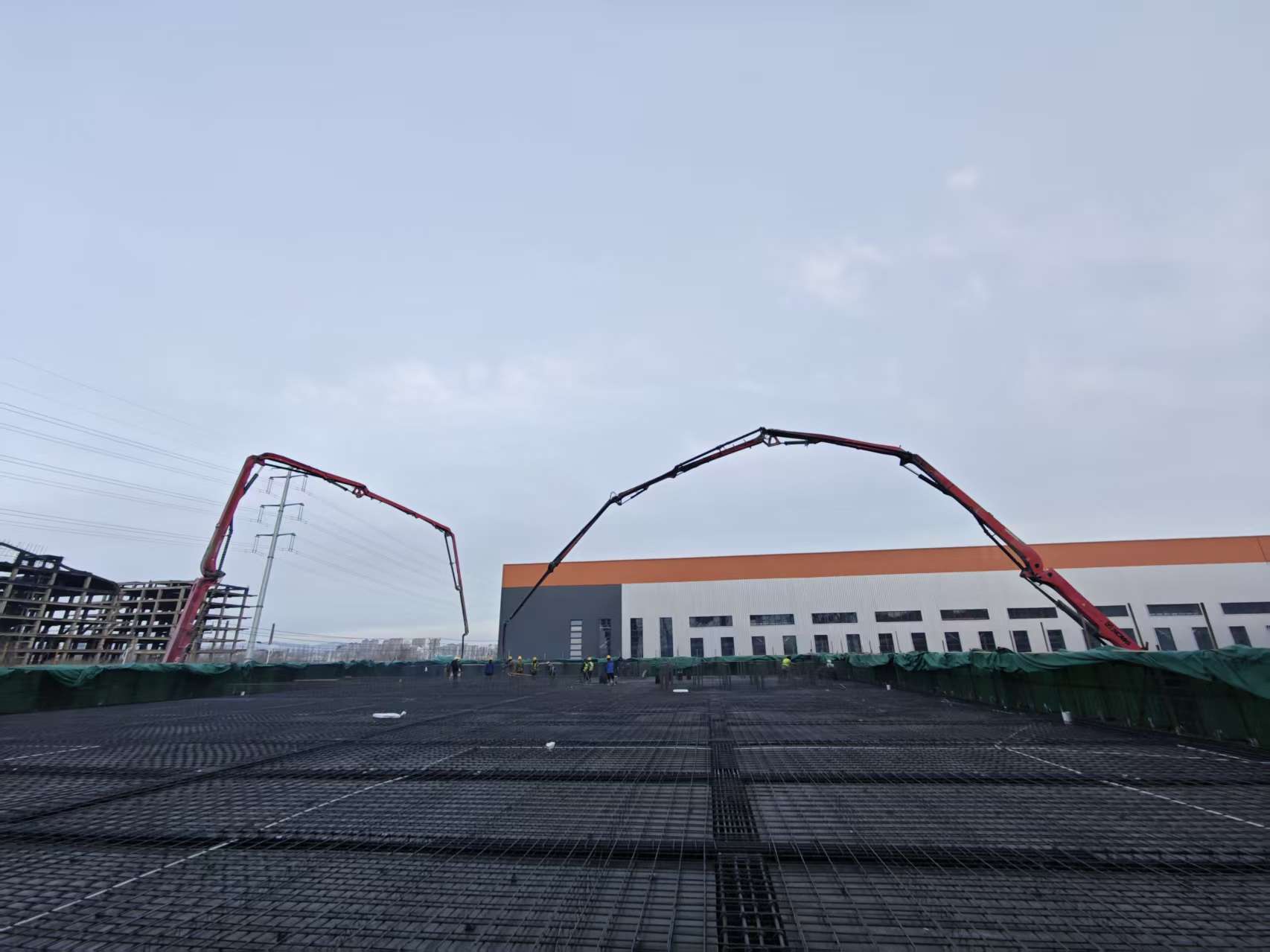 工程于9月17日開工后,面對項目場地受限、大體積筏板基礎混凝土澆筑任務繁重、車間鋼結構跨度大、有效工期短促等重重挑戰,項目團隊精心組織施工,合理配置資源,推行策劃先行理念,深化BIM技術應用,實現全專業建模、圖紙審查與施工指導并聯協同。在確保施工安全和質量的前提下,項目采取“分區域施工+動態調整+24小時輪班作業”等施工方法,制定施工路線圖,組織百余名建設者,突破包頭地區多雨強風與冬季嚴寒的雙重考驗,僅僅用105天高效優質完成全部單體工程主體結構施工任務,實現全線封頂目標。累計開挖土方171407立方米,回填土方8700立方米,綁扎鋼筋2039噸,澆筑混凝土20700立方米,鋼結構安裝3917噸,工程建設跑出“二冶速度”,彰顯了駐地央企的責任擔當和實力。