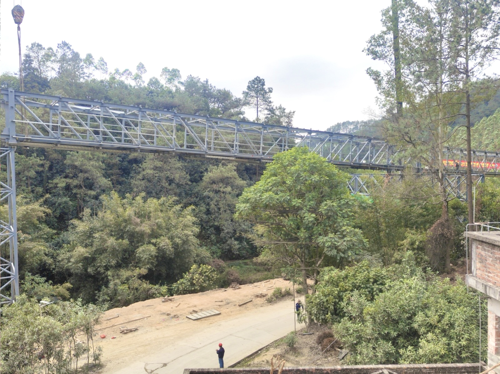 肇慶皮帶連廊項(xiàng)目是當(dāng)?shù)赝晟啤暗V山-廠區(qū)-港口”聯(lián)動(dòng)運(yùn)輸格局的重要配套工程,建成后將實(shí)現(xiàn)物料全封閉、低能耗輸送,大幅降低運(yùn)輸過(guò)程中的粉塵污染,契合肇慶打造粵港澳大灣區(qū)西江內(nèi)河航運(yùn)樞紐中心、推動(dòng)綠色建材產(chǎn)業(yè)升級(jí)的發(fā)展規(guī)劃。其中9#~13#高架作為項(xiàng)目關(guān)鍵控制性工程,施工區(qū)域地形復(fù)雜,高空作業(yè)多、精度要求高,對(duì)施工組織和技術(shù)管控提出嚴(yán)苛挑戰(zhàn)。